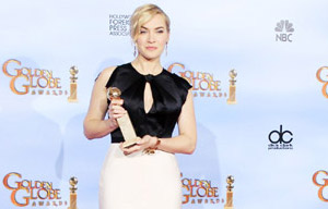 Kate Winslet gets award for best performance by an actress in a mini-series or motion picture made for television at the 69th annual Golden Globe Awards in Beverly Hills, California January 15, 2012.