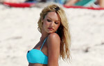 Candice Swanepoel, a South African model best known for her work with Victoria's Secret, poses for a group of bikini beach photos.