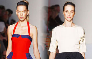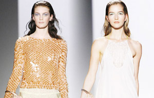 Models present a creation from the Tadashi Shoji Spring/Summer 2012 collection during New York Fashion Week.