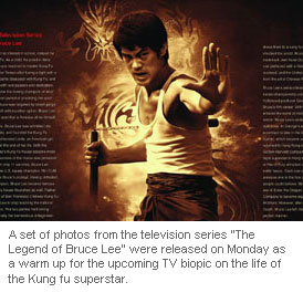 A set of photos from the television series "The Legend of Bruce Lee" were released on Monday as a warm up for the upcoming TV biopic on the life of the Kung fu superstar.