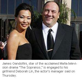 James Gandolfini, star of the acclaimed Mafia television drama "The Sopranos," is engaged to his girlfriend Deborah Lin, the actor's manager said on Thursday.