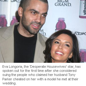 Eva Longoria, the 'Desperate Housewives' star, has spoken out for the first time after she considered suing the people who claimed her husband Tony Parker cheated on her with a model he met at their wedding.