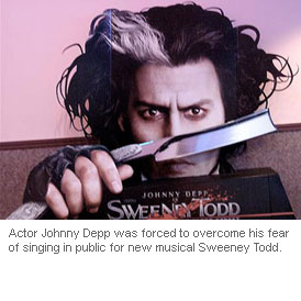 Actor Johnny Depp was forced to overcome his fear of singing in public for new musical Sweeney Todd.