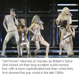 "Girl Power" returned on Sunday as Britain's Spice Girls kicked off their long awaited world reunion tour with a more sophisticated look than when they first stormed the pop world in the late 1990s.