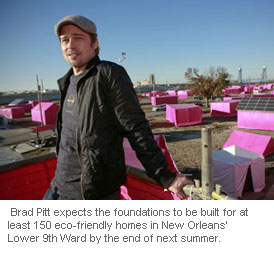 Brad Pitt expects the foundations to be built for at least 150 eco-friendly homes in New Orleans' Lower 9th Ward by the end of next summer.