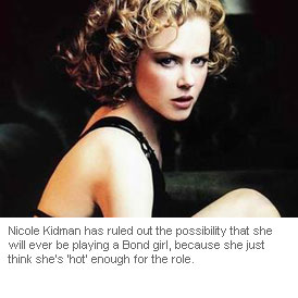 Nicole Kidman has ruled out the possibility that she will ever be playing a Bond girl, because she just think she's 'hot' enough for the role.