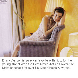 Emma Watson is surely a favorite with kids, for the young starlet won the Best Movie Actress award at Nickelodeon's first ever UK Kids' Choice Awards.