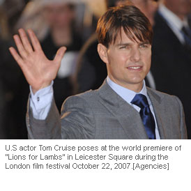 Film star Tom Cruise spent more than two hours signing autographs and greeting fans in London on Monday at the world premiere of his new movie "Lions for Lambs," Hollywood's latest examination of U.S. foreign policy.