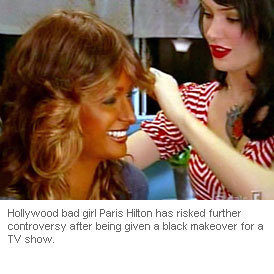Hollywood bad girl Paris Hilton has risked further controversy after being given a black makeover for a TV show.