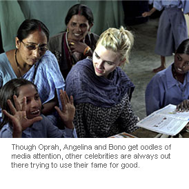 Though Oprah, Angelina and Bono get oodles of media attention, other celebrities are always out there trying to use their fame for good.
