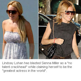 Lindsay Lohan has blasted Sienna Miller as a "no talent crackhead" while claiming herself to be the "greatest actress in the world".