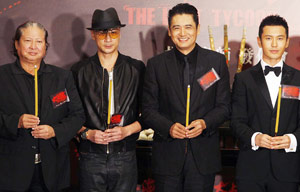Actors Francis Ng, Huang Xiao-ming, Chow Yun-fat and Sammo Hung attend a news conference on their latest movie "The Last Tycoon" in Hong Kong October 17, 2012.