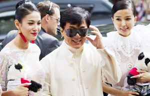Yao Xingtong, Jackie Chan and Zhang Lanxin attend the gala presentation of the film "In Conversation With Jackie Chan" at the 37th Toronto International Film Festival, September 9, 2012.