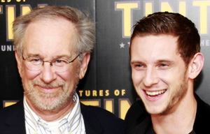 Director Steven Spielberg and cast members pose during a photocall for the movie "The Adventures of TinTin, The Secret of the Unicorn" in Paris.