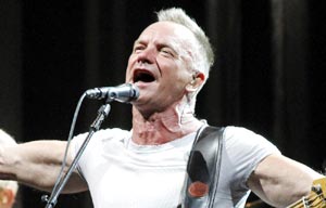 Singer Sting performs during his concert at the Olympic Sports Complex in Moscow.
