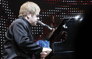 British musician Elton John performs on stage in Riga Nov 3, 2011.