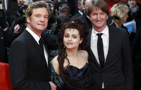 Director Tom Hooper, actors Helena Bonham Carter and Colin Firth (R-L) arrive at the red carpet for the screening of the movie 'The King's Speech' at the 61st Berlinale Film Festival in Berlin February 16, 2011.