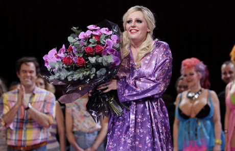 Eva-Maria Westbroek, who plays Anna Nicole, takes a curtain call after performing in the opening night of the opera based on the life of Anna Nicole Smith, at the Royal Opera House in central London, February 17, 2011.