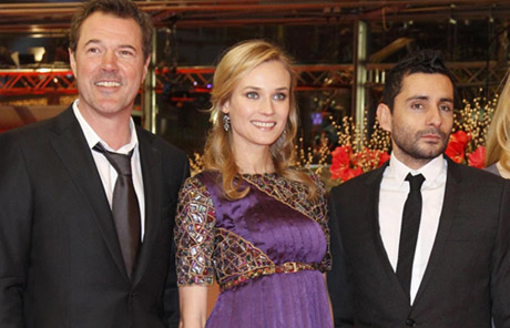 Director Jaume Collet-Serra (R) poses with actors Karl Markovics (L), Sebastian Koch (2nd L) and Diane Kruger (3rd L) as they arrive on the red carpet for the screening of the movie 'Unknown' at the 61st Berlinale International Film Festival in Berlin February 18, 2011.