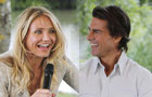 Cast members Tom Cruise (L) and Cameron Diaz walk in a vineyard before a news conference for the premiere of the film "Night & Day" in Martillac, southwestern France, July 23, 2010.