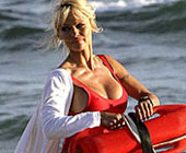 Pamela Anderson has revived her trademark skimpy red swimsuit for a new television commercial - but this time there is cellulite.
