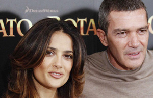 Cast members Antonio Banderas and Salma Hayek promote their animated film "Puss in Boots" in Madrid November 23, 2011.