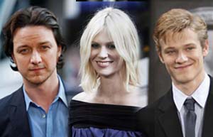 Cast members Zoe Kravitz, Kevin Bacon, January Jones, James McAvoy, and Michael Fassbender pose at the premiere of "X-Men: First Class" in New York City May 25, 2011.