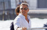 U.S. actor George Clooney arrives by speedboat in Venice August 30, 2011.