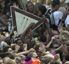 A crowd of revellers is pictured outside a tunnel at the Love Parade "The art of Love" in the western German city of Duisburg July 24, 2010.