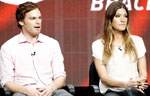 Cast members Sophia Bush and David Krumholtz participate in a panel for CBS series "Partners" during the CBS sessions.