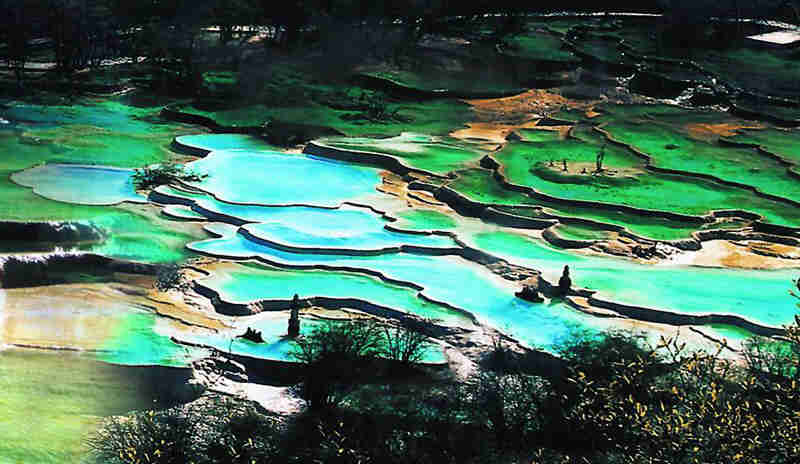 Jiuzhaigou's attraction lies in its primitive and mysterious beauty. According to a beautiful legend, long, long ago, the brave mountain deity Da Ge fell in love with the charming goddess Se Mo and gave her a mirror burnished by wind and cloud. Carelessly, Se Mo accidentally smashed the gift. The segments sprinkled down into the world, changing as they fell into the 114 magnificent alpine lakes of the region. The average altitude of Jiuzhaigou Scenic Area is between 2,000 and 4,760 meters, and the area enjoys cool summers and warm winters. With an average temperature between 13 and 21 degrees centigrade, summer here sees the abundant greenery in its prime, with gentle gurgling streams and crystal clear waterfalls cascading down from tall mountain peaks. Primitive, unspoiled, and uninhabited, it is an idyllic nature getaway. |