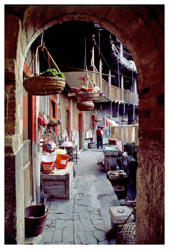Hundreds of people share communal houses The earth buildings are group-oriented residences with dozens or even hundreds of rooms. Two thirds of the houses are used to accommodate roughly 20 families or a clan of hundreds of family members and each family occupies one vertical unit. Some buildings don't have an open round hallway; instead each family has its own private staircase. The earth buildings are made of earth, stone, bamboo and wood, all readily available materials. After constructing the walls with rammed earth; branches, strips of wood and bamboo chips are laid in the wall as "bones" to reinforce it. The result is a well-lit, well-ventilated, windproof, and quakeproof building that is warm in winter and cool in summer. Miniature fortified castles As most Hakka traditionally lived in the mountains, these communal houses made of compacted earth were built to provide protection against bandits and wild animals - almost like small fortified castles. Earth buildings are mostly distributed in Yongding, Nanjing, and Hua'an, but the largest concentration and some of the most spectacular buildings are in Yonding County. The older earth buildings usually consist of an inner ring surrounded by a large outer ring. The main entrance doors are padded with iron sheets and the walls are usually about 1m thick. There are observation holes above the entrance doors with lookout and defense platforms under the roof. Surprisingly, the windows facing outside tend to be small making it extremely hard to enter through the windows. There are usually no windows on the ground level. Huanji Building - the most mysterious round building Huanji Building was built in 1693, during the Qing Dynasty. In 1918 it withstood an earthquake measuring 6.2 on the Richter scale. Mysteriously, the over 0.33m wide and 3.3m long crack automatically closed up after the earthquake. All you can see now are some small crack traces. In the Chinese civil war, the building was bombed by the Kuomintang but water from the moat near the gate was used to extinguish the fire. Another unique feature of the Huanji Building is the echo effect that reverberates around the building. Yijing Building - the highest square building With five stories measuring 17 m high, this is the tallest earth building in Yongding. Covering an area of 50,000 sq m, it has 267 rooms and numerous windows. According to locals, if you begin to open the windows at sunrise, have a rest at lunchtime and start to close the windows afterwards, the sun will set before the last window is finally closed. Zhencheng Building - the prince of earth building Built in 1912 at a cost of 80,000 silver dollars, this is the most magnificent round building under state protection. The ingenious structure is a combination of traditional and western architecture. The main building is composed of an inside round ring, an outside round ring and a central hall. The outside ring has four stories divided into eight components according to China's traditional Ba Gua (an eight-sided diagram), with each side forming a courtyard separated by firewalls. Corridors connect some courtyards. On both sides of the main building, there