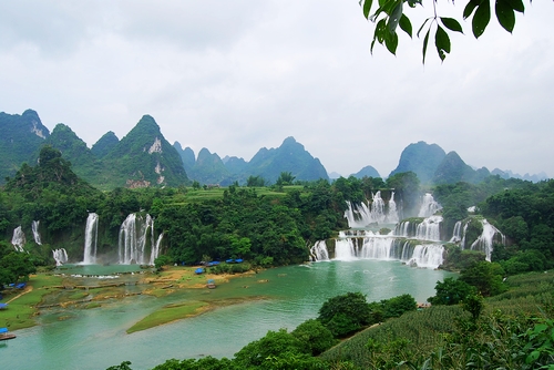 Listed in the top 5 "most beautiful waterfall in China" by China National Geography, the Detian Waterfall is over 200 meters wide and has a drop of more than 70 meters. Its water rushes down a three-tiered cliff with tremendous force. It is the largest waterfall in Asia, and the second largest transnational waterfall in the world, connecting with a waterfall in Vietnam. The fall is awe-inspiring, and its thunder is audible before it even comes into view.