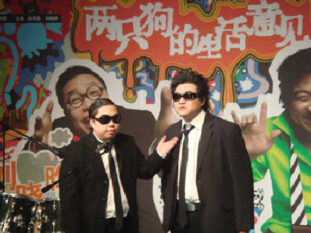 Drama:The Life Comments of Two DogsUpdated: 2007-06-12 08:58 Liu Xiaoye (L) and Chen Minghao are the only two actors of the play. How would you see the world if you were a dog? You may just find out if you go to the theatre this spring and watch "The Life Comments of Two Dogs", the new cutting-edge drama directed by Meng Jinghui. Audience members will get to explore some of the big questions plaguing Chinese society from a canine perspective at the East Pioneer Theatre in Beijing from May 15 to the first of July. The two dogs at the center of play will look all kinds of every day issues, from online relationships to weight loss campaigns, poisonous food to traffic jams, and even sky high education fees. But "The Life Comments of Two Dogs" will push the envelope even further than just the unique angle. The play has no pre-written script, not set scenes and possibly no plot at all. The only two actors in the cast, Liu Xiaoye and Chen Minghao, created the concept seven years ago. Chen Minghao described the show as open. "Our play is very open. The plot may