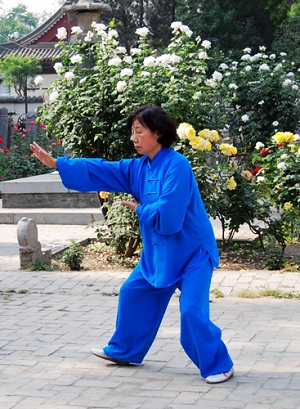 A woman practices tai chi at Xiaoyan Pagoda Historic Culture Park in Xi'an A former kick boxer is trying to spread tai chi to youngsters in the city with free training classes that have attracted hundreds of white-collar workers, the sort of people who previously scoffed at the martial art as something to keep the elderly busy. Huang Zhongda, who spent 10 years mastering tai chi before opening up a training center at Shanghai Stadium last December, says many young people are taking up the exercise to stay fit. His center offers free training for beginners, but members who wish to master the skill are expected to pay for lessons.