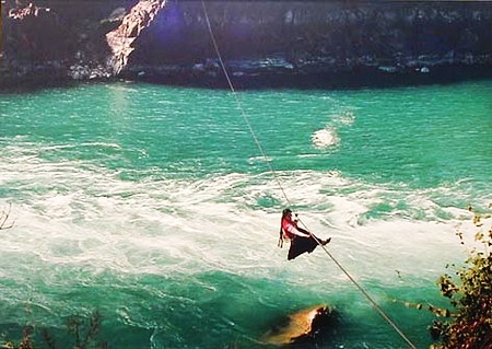A woman passes Nu River through a ropeway While celebrations continue for the South China Karst and Kaiping Watchtower being inscribed on the World Heritage list recently, few people have any idea that six World Heritage sites in the country have been warned by UNESCO. On June 26, during the World Heritage Committee's 10-day annual meeting in Christchurch, New Zealand, the Chinese delegation submitted a report on the restoration of Three Parallel Rivers in Yunnan Province, which finally won the voting and managed to keep its World Heritage status. However, the protected area in Yunnan province still faces the threat of being removed from the list if it cannot pass the further check at next year's annual meeting. The Three Parallel Rivers, which covers a vast area in the upper reaches of the Nu (Salween), Lancang (Mekong) and Jinsha (Yangtze) rivers, received serious concerns from UNESCO for the controversial proposal to build dams and waterpower establishments near the site. China is asked to submit a complete assessment report next year on the potential environment damages due to the dam building project.