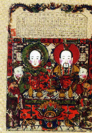 The Kitchen God, Qing Dynasty(AD1644-1911), Tianjin Yangliuqing, painted xylograph with process printing and hand painting.