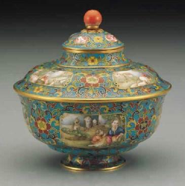 Cloisonné Enamel WaresUpdated: 2007-10-10 15:45 7. Wire inlayed cloisonné enamel Occidental lidded pot