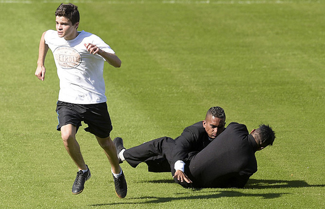 Supporters of the two contestants, who do not want to miss any chance of direct contact with their idol players, invaded the pitch before or during a World Cup game, bringing big trouble for security guards.