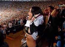 世界杯現(xiàn)場球迷貼出了她的一張照片,在看臺上直接掀起上衣,露出了黑色的文胸, 歡慶德國奪冠。