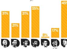 Facebook上的數(shù)據(jù)表明,女球迷對世界杯上的非熱門球隊更感興趣,比如伊朗、哥倫比亞、美國和哥斯達(dá)黎加,超過40%的微博都提到了這些國家。