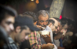 A man distributes food to Muslims as they break their fast during the month of Ramadan in Tehran, Iran.
