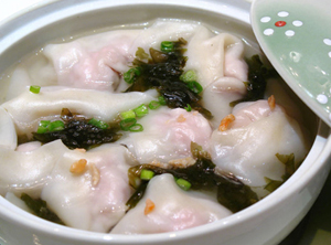 Six traditional foods for Dongzhi. They are jiaozi, tangyuan, babao porridge, mutton, Chinese radish and wonton.