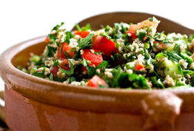 Golden beet and beet-greens salad with yogurt, mint and dill