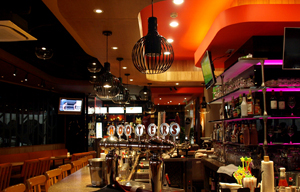 The restaurant serves typical American food, including giant big burgers, salads, and chicken wings in big plates.