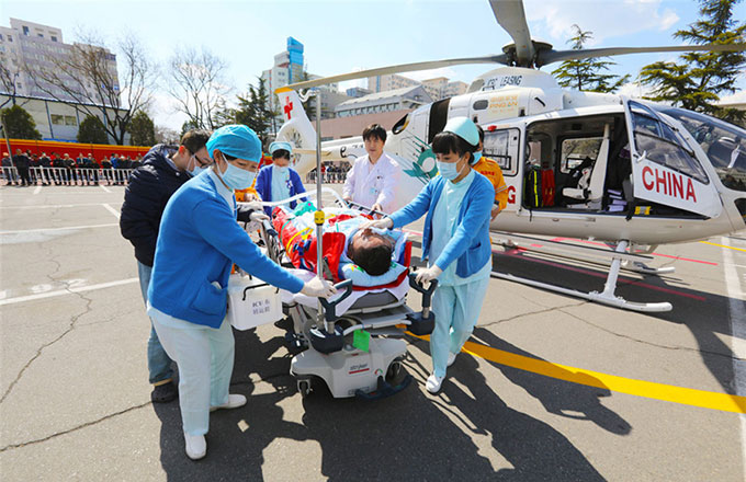 Sun Xiaoming, 35, had never left ground until being loaded into a medical helicopter on March 26.