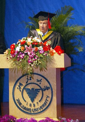 中國日報網(wǎng)站消息:2006年3月23,在位于杭州的浙江大學(xué)玉泉校區(qū),浙江大學(xué)授予國際奧委會名譽(yù)主席薩馬蘭奇名譽(yù)博士學(xué)位。(來源:新華網(wǎng))