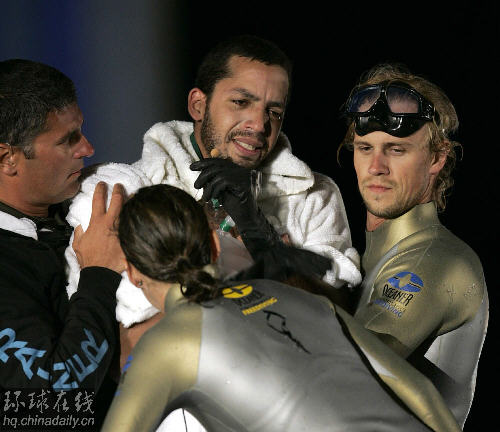 當地時間2006年5月8日,在水下生活了一周的布萊恩終于出缸。(路透社圖片)