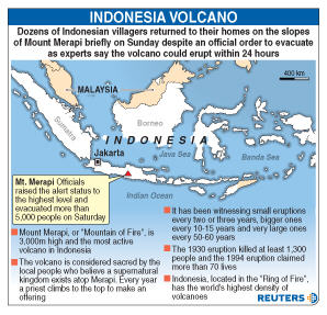 默拉皮火山位于印尼的爪哇島上。(路透社圖片)