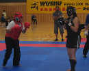 28日進(jìn)行的競賽更是精彩激烈,有90多人分別參加了散手、套路、器械、太極推手等幾個部項目的比賽。其中參加散手比賽的裁判和選手達(dá)多是當(dāng)?shù)氐腒IWI,從比賽規(guī)則到選手的服裝護(hù)具嚴(yán)格按照中國武協(xié)的散手規(guī)則,連裁判比賽用語都是漢語。
